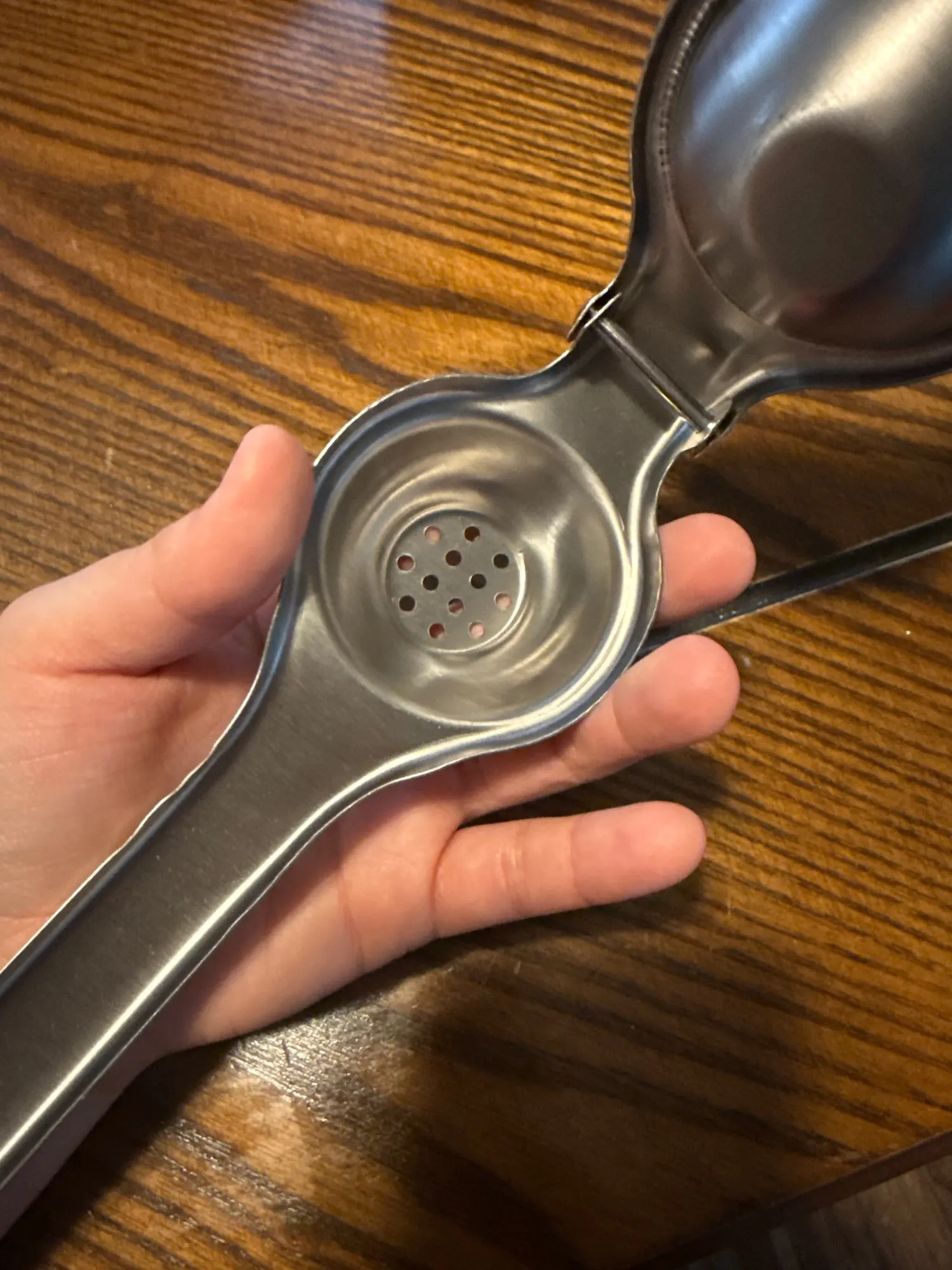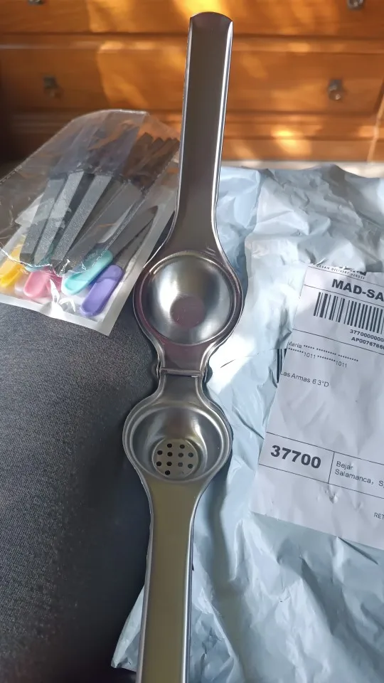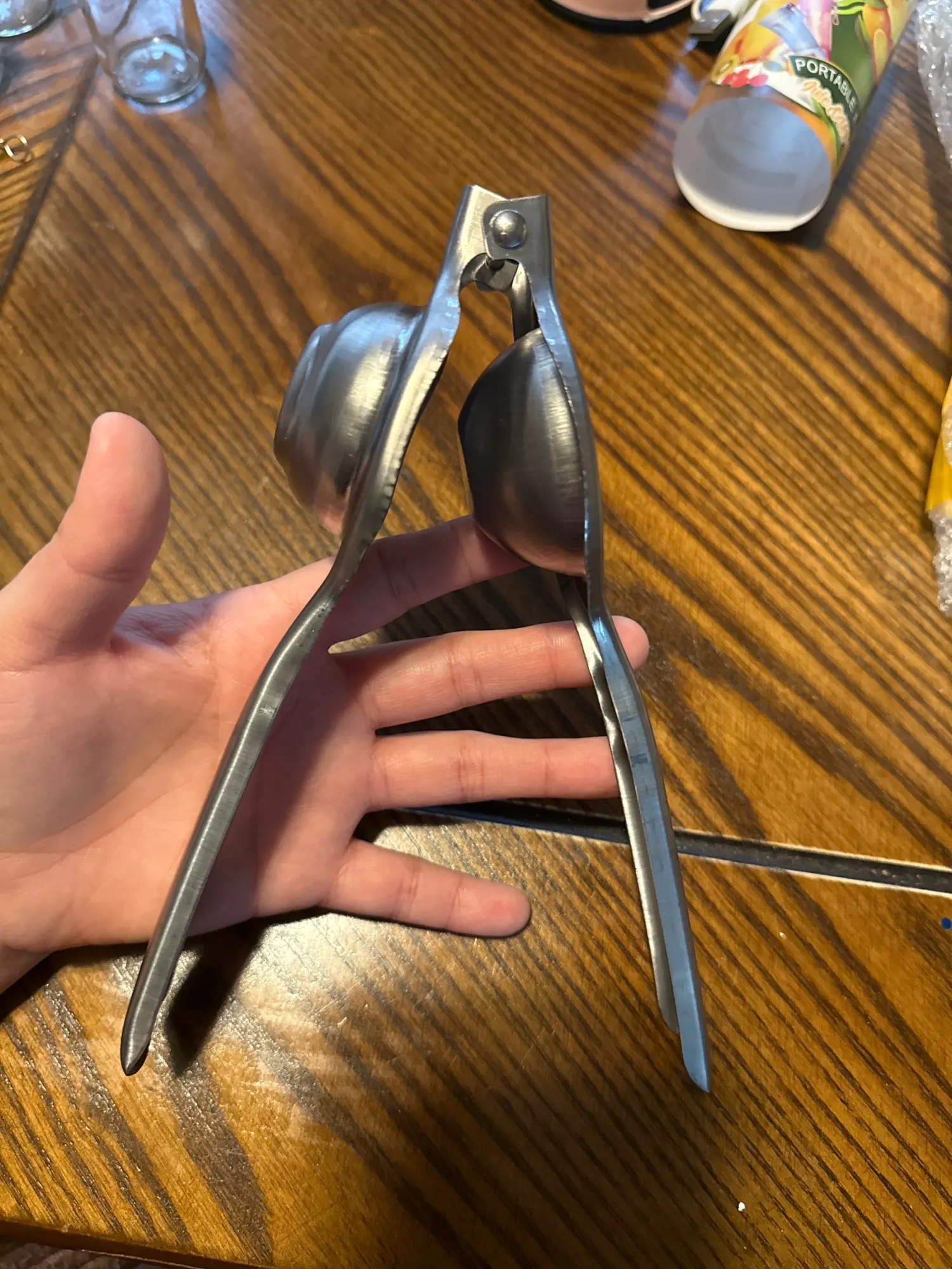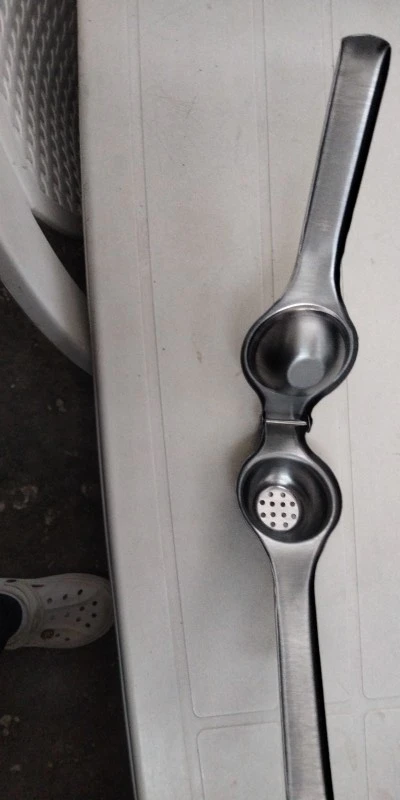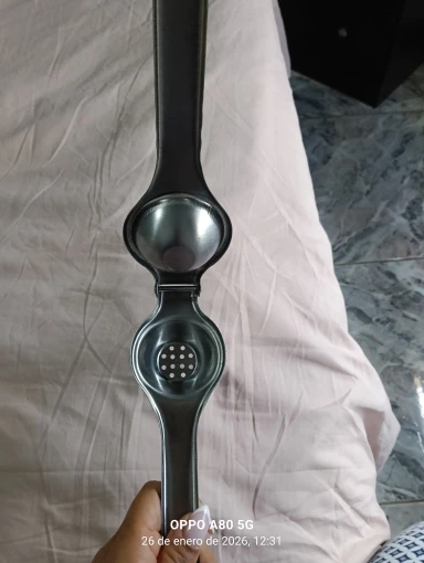 Made of stainless steel, no rust, smooth surface, easy to clean. Simple to use, gently squeeze, you can squeeze fresh and delicious juice. Riveting secure, not easy to fall off.